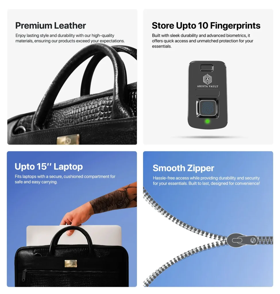 Arista Vault Croc-Textured Finger Lock Smart Laptop Bag Black 7,799.00
